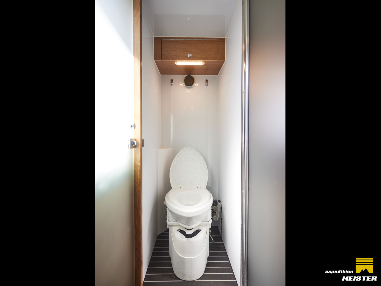 Separate Dusche und Toilette mit Türen zur Abtrennung vom Wohnbereich