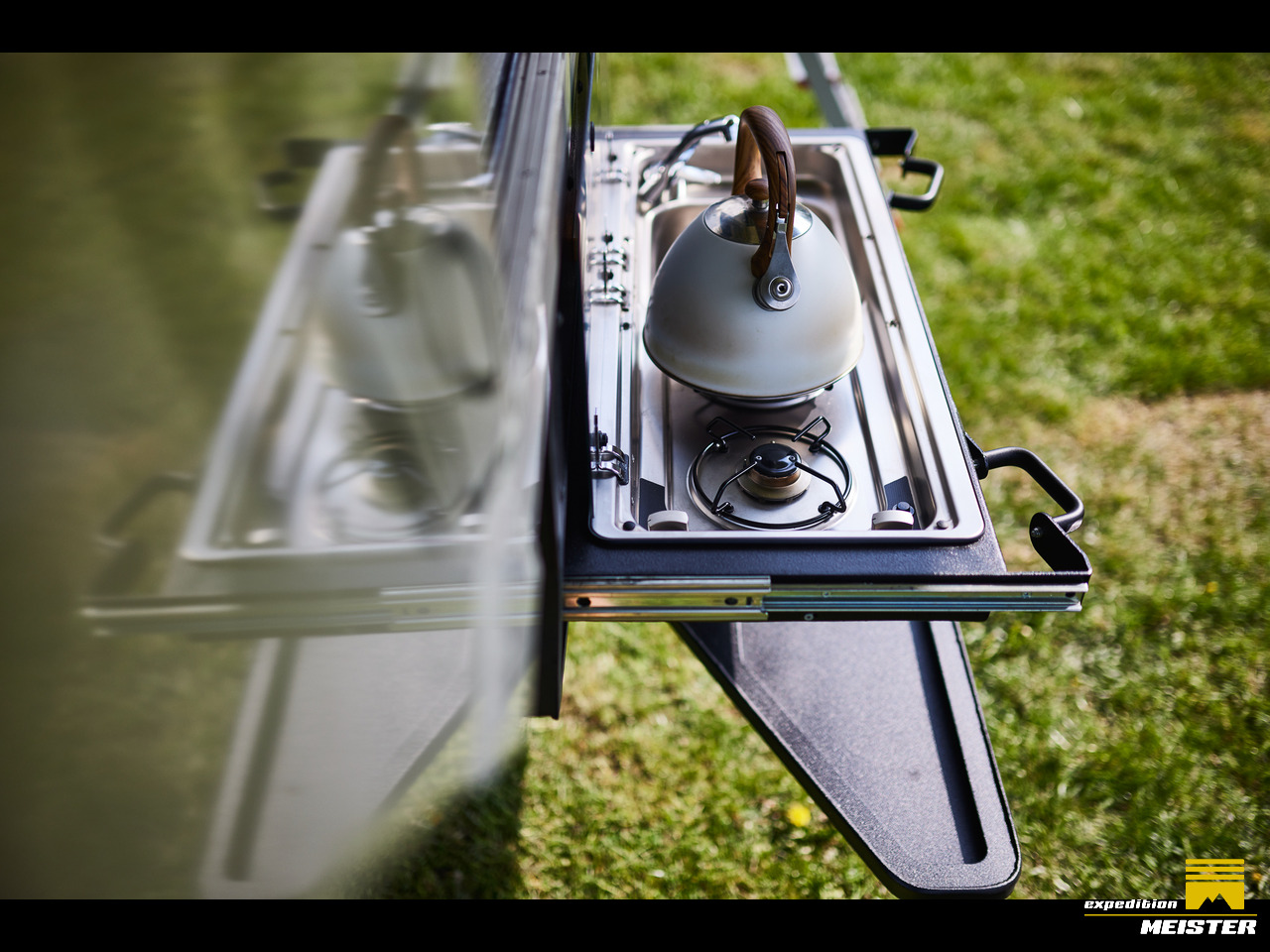 Außenküche mit Zwei-Flammen-Gasherd und Spüle