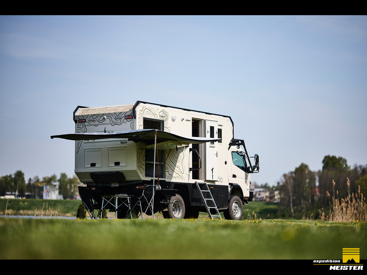 English and French below Kilometerstand: 47 000 km Maximale Gesamtmasse: 6,5 Tonnen Baujahr: 2018 12 Monate Garantie auf die Aufbau Preis: 200 000 Euro LKW 4-Zylinder-Dieselmotor; 3,0 l, mit Turbolader Motorleistung: 129 kW (175 PS) bei 3500 U/min Getriebe: manuell, 5 Vorwärtsgänge und 1 Rückwärtsgang Antrieb: 4 x 4 mit Sperrdifferential Schwerlast-Offroad-Fahrwerk mit weichem Federweg Semi-Automatisches Reifendrucksystem mit 12V Elektrokompressor und 30 l Behälter Hinterfelgen: Super Single, 19...