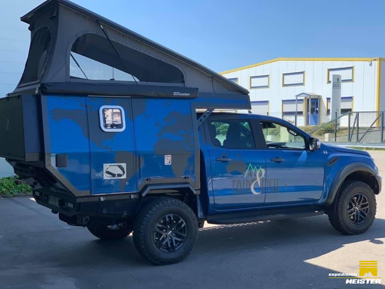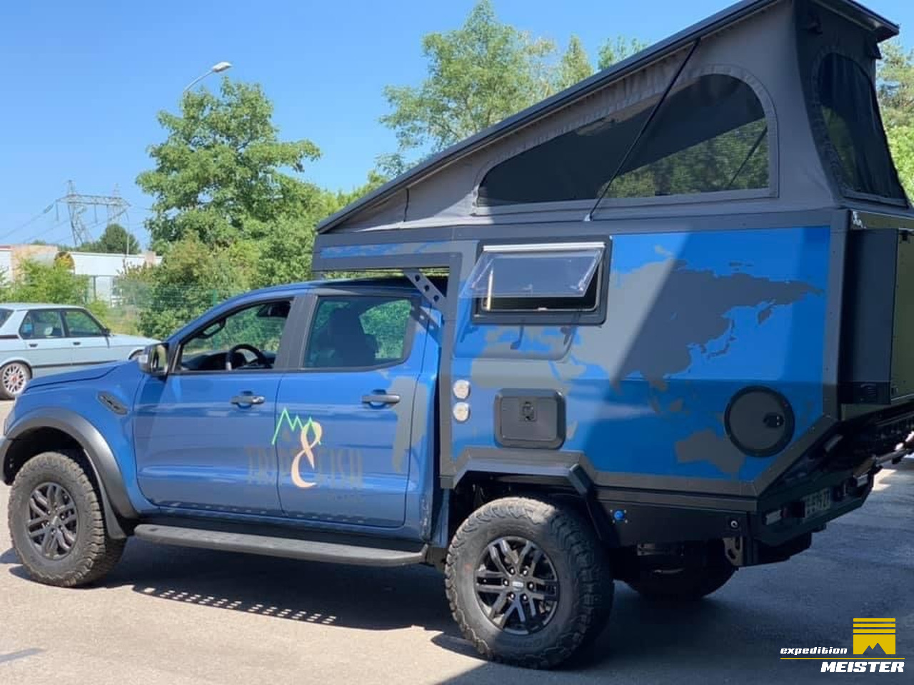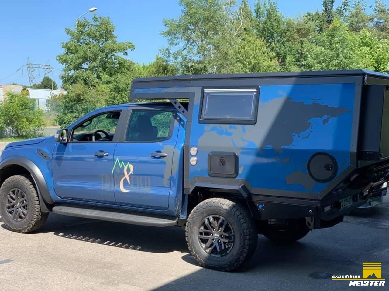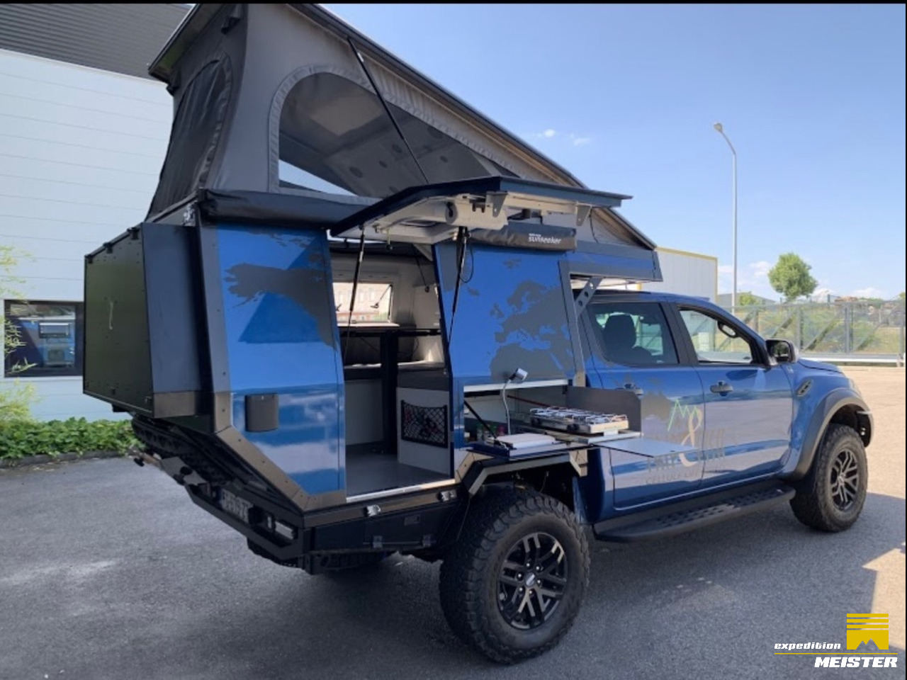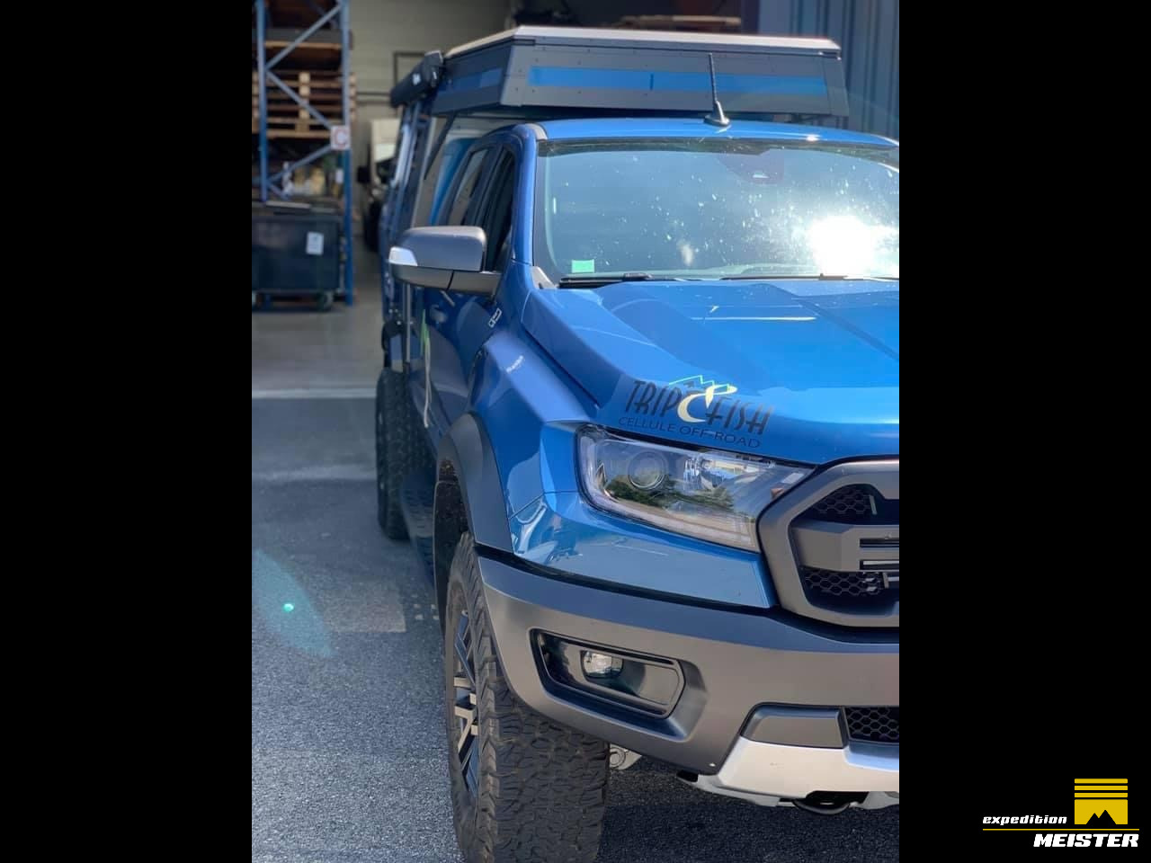 All maintenance carried out at Ford. The truck is 100% ready. Fully equipped Trip and Fish adventure cell: - Furniture kit: 6 storage units ( 1300 liters) + external gas box + low bed on telescopic table + cushions + high bed on jacks. - Water pack: 80L tank, external filling + automatic pump + external shower. - Heating + hot water pack: Webasto Air Top heater + digital control, altitude kit, room thermostat, programmable outdoor sensor + hot water production by 6L air/water boiler. - Electrical package: Votronic electrical panel: battery level, water level + USB + 12v socket + 140Ah AGM battery + LED lighting integrated into worktops + 130W Sunpower solar panel + MPPT regulator. - Outdoor shower pack: rear trunk + heated cabin! Top of the line! Not a gadget, but a real plus. - Inside and outside kitchen pack: Fully equipped, telescopic 2-burner stainless steel ENO stove + windscreen + storage + crockery + mugs + lighting. VITRIFRIGO 51L compression refrigerator including 3.6L freezer. Combined interior with CAN 2-burner stove, stainless steel sink and fold-down tap. Smoked glass lid. Additional equipment: - Sunseeker III 2.5M awning, watertight mounted on the cell - MAXTRAX MK2 sand removal plates + pivoting support. - Removable inner insulating canvas for winter or high-altitude outings The original tub is available.
