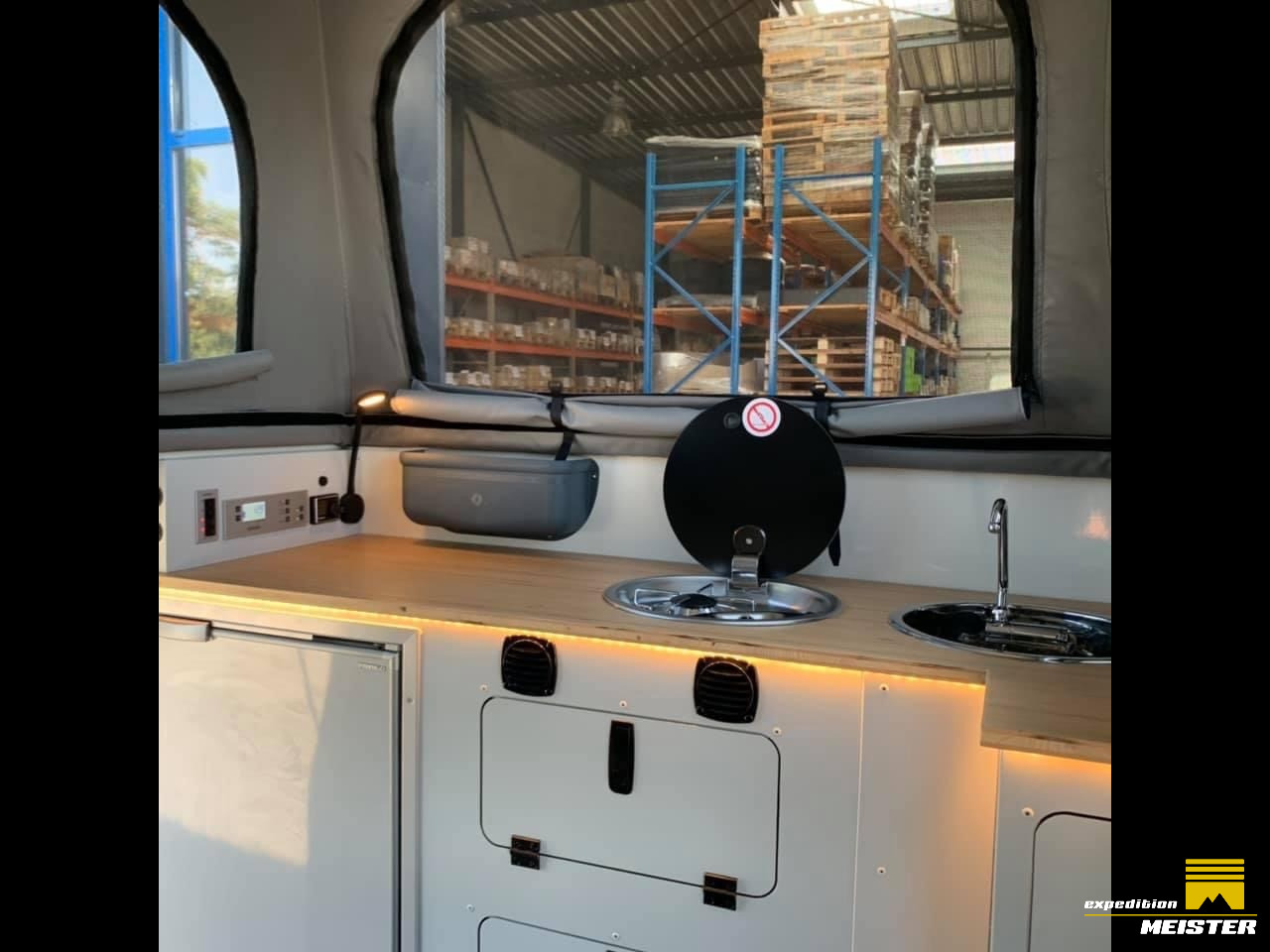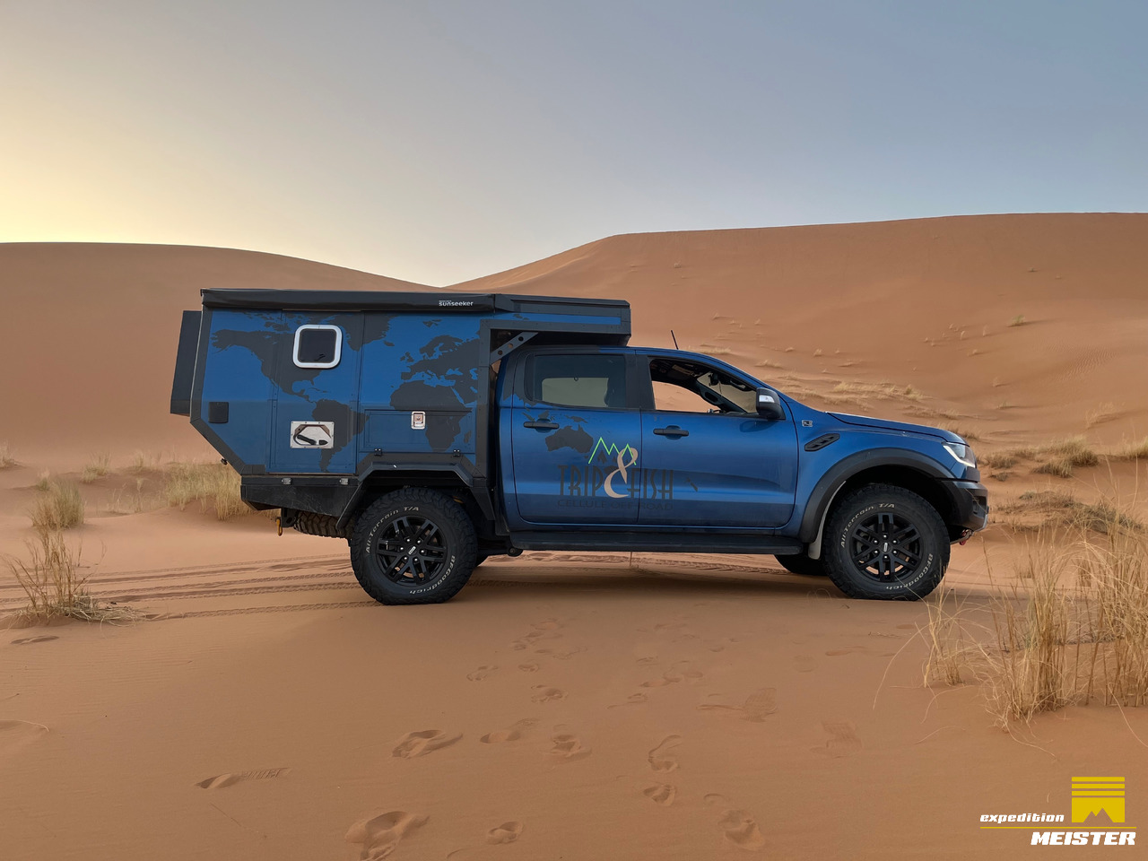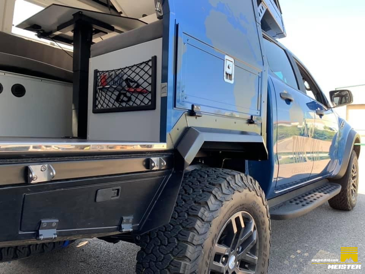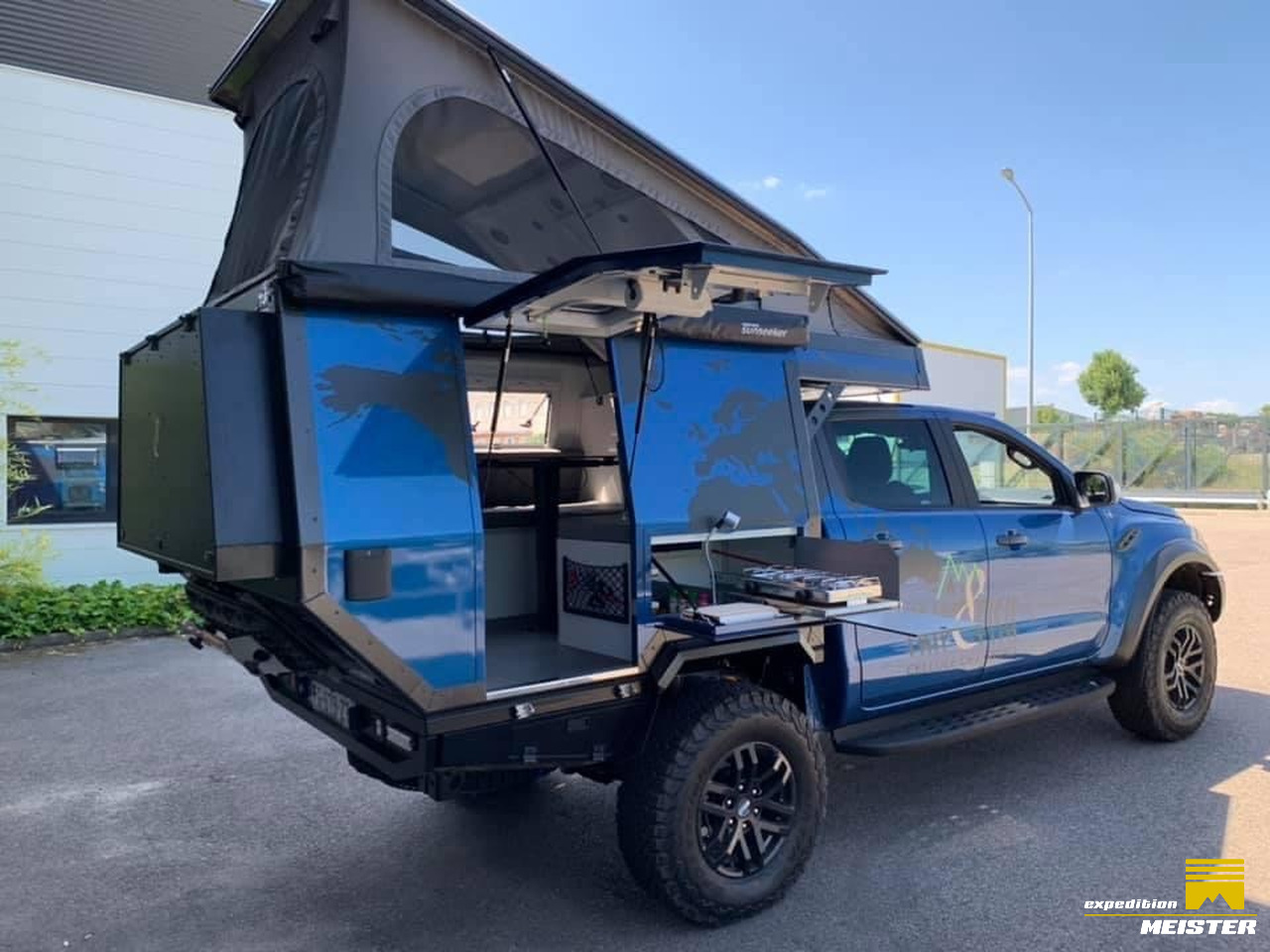 All maintenance carried out at Ford. The truck is 100% ready. Fully equipped Trip and Fish adventure cell: - Furniture kit: 6 storage units ( 1300 liters) + external gas box + low bed on telescopic table + cushions + high bed on jacks. - Water pack: 80L tank, external filling + automatic pump + external shower. - Heating + hot water pack: Webasto Air Top heater + digital control, altitude kit, room thermostat, programmable outdoor sensor + hot water production by 6L air/water boiler. - Electrical package: Votronic electrical panel: battery level, water level + USB + 12v socket + 140Ah AGM battery + LED lighting integrated into worktops + 130W Sunpower solar panel + MPPT regulator. - Outdoor shower pack: rear trunk + heated cabin! Top of the line! Not a gadget, but a real plus. - Inside and outside kitchen pack: Fully equipped, telescopic 2-burner stainless steel ENO stove + windscreen + storage + crockery + mugs + lighting. VITRIFRIGO 51L compression refrigerator including 3.6L freezer. Combined interior with CAN 2-burner stove, stainless steel sink and fold-down tap. Smoked glass lid. Additional equipment: - Sunseeker III 2.5M awning, watertight mounted on the cell - MAXTRAX MK2 sand removal plates + pivoting support. - Removable inner insulating canvas for winter or high-altitude outings The original tub is available.