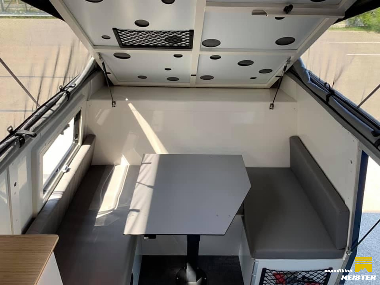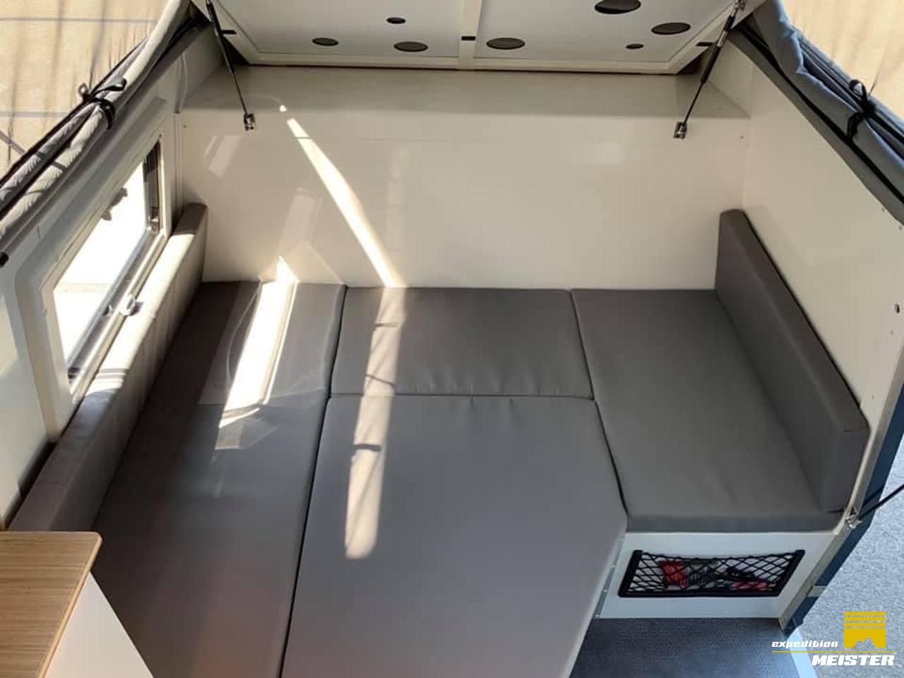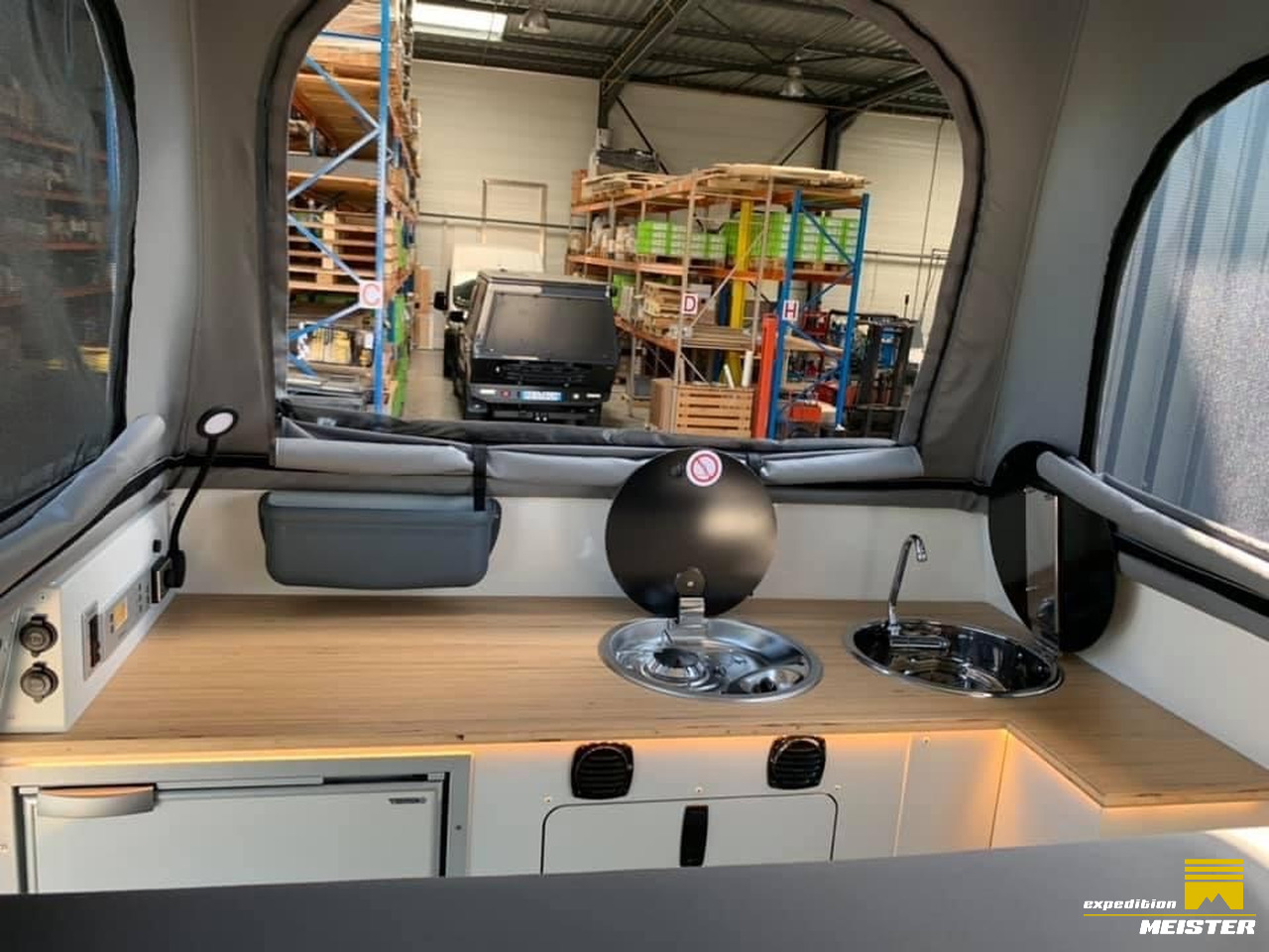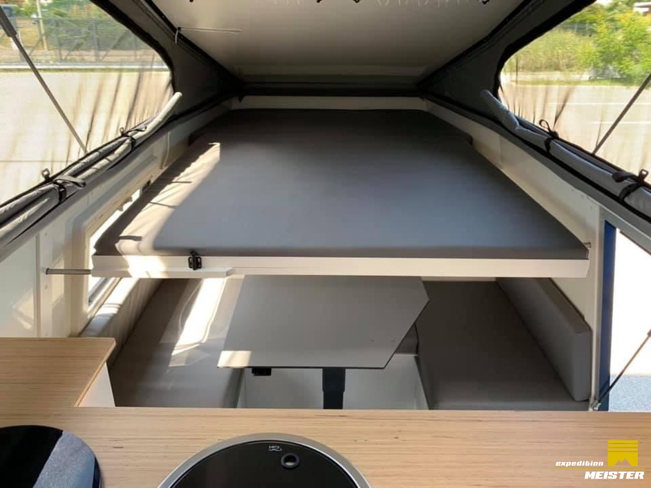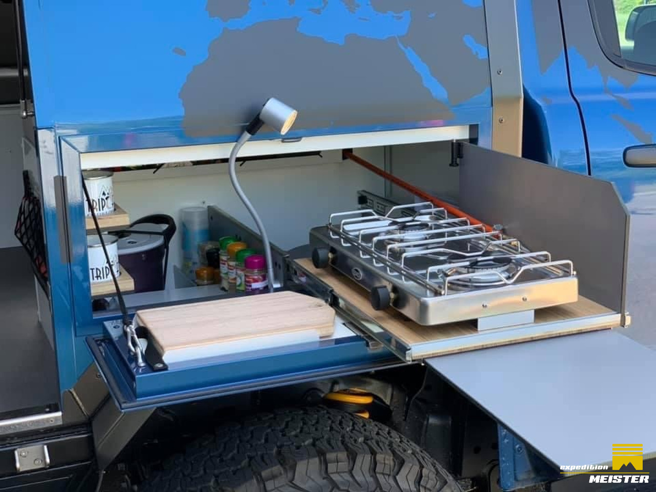 All maintenance carried out at Ford. The truck is 100% ready. Fully equipped Trip and Fish adventure cell: - Furniture kit: 6 storage units ( 1300 liters) + external gas box + low bed on telescopic table + cushions + high bed on jacks. - Water pack: 80L tank, external filling + automatic pump + external shower. - Heating + hot water pack: Webasto Air Top heater + digital control, altitude kit, room thermostat, programmable outdoor sensor + hot water production by 6L air/water boiler. - Electrical package: Votronic electrical panel: battery level, water level + USB + 12v socket + 140Ah AGM battery + LED lighting integrated into worktops + 130W Sunpower solar panel + MPPT regulator. - Outdoor shower pack: rear trunk + heated cabin! Top of the line! Not a gadget, but a real plus. - Inside and outside kitchen pack: Fully equipped, telescopic 2-burner stainless steel ENO stove + windscreen + storage + crockery + mugs + lighting. VITRIFRIGO 51L compression refrigerator including 3.6L freezer. Combined interior with CAN 2-burner stove, stainless steel sink and fold-down tap. Smoked glass lid. Additional equipment: - Sunseeker III 2.5M awning, watertight mounted on the cell - MAXTRAX MK2 sand removal plates + pivoting support. - Removable inner insulating canvas for winter or high-altitude outings The original tub is available.