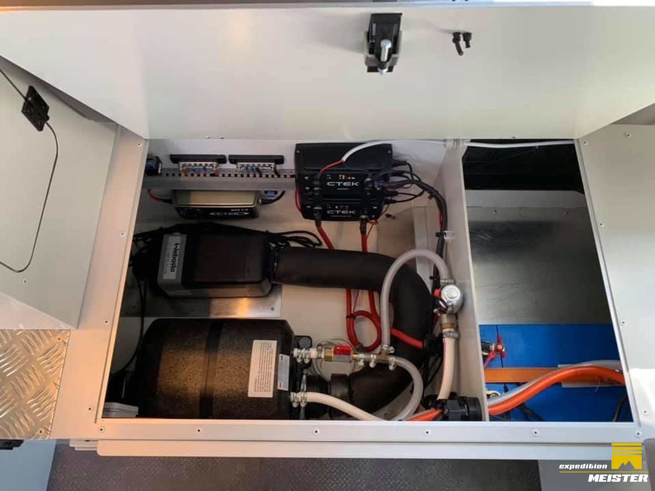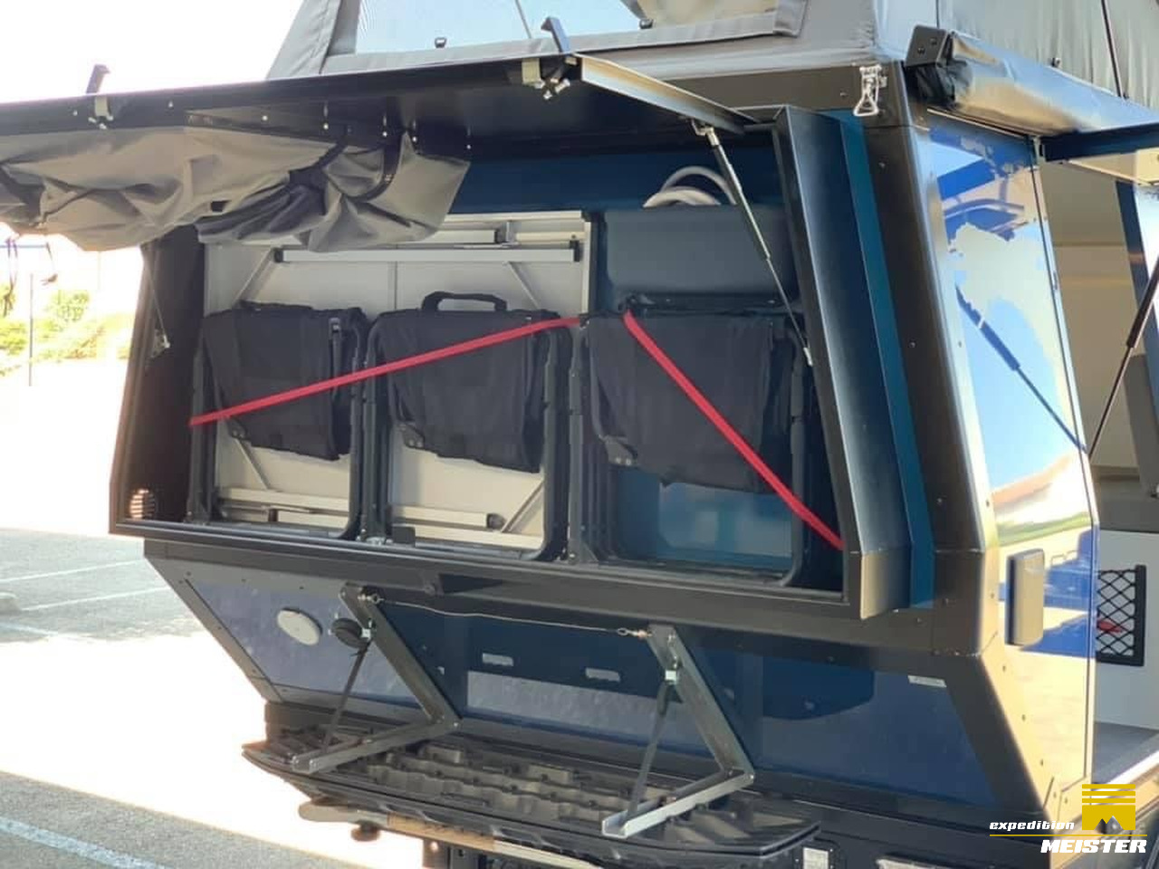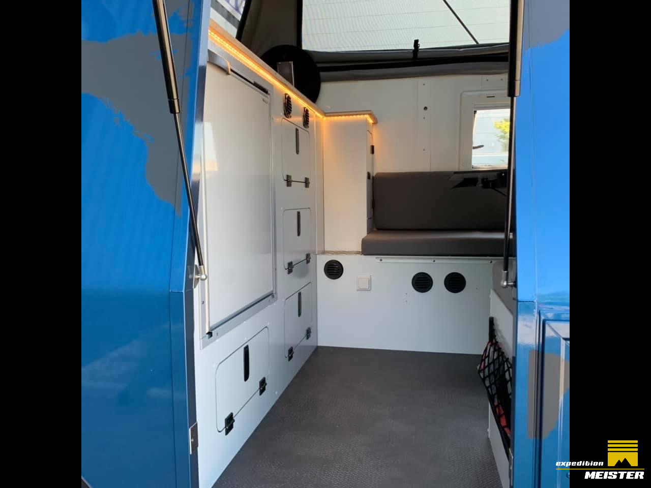 All maintenance carried out at Ford. The truck is 100% ready. Fully equipped Trip and Fish adventure cell: - Furniture kit: 6 storage units ( 1300 liters) + external gas box + low bed on telescopic table + cushions + high bed on jacks. - Water pack: 80L tank, external filling + automatic pump + external shower. - Heating + hot water pack: Webasto Air Top heater + digital control, altitude kit, room thermostat, programmable outdoor sensor + hot water production by 6L air/water boiler. - Electrica...