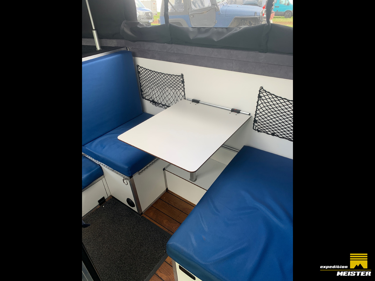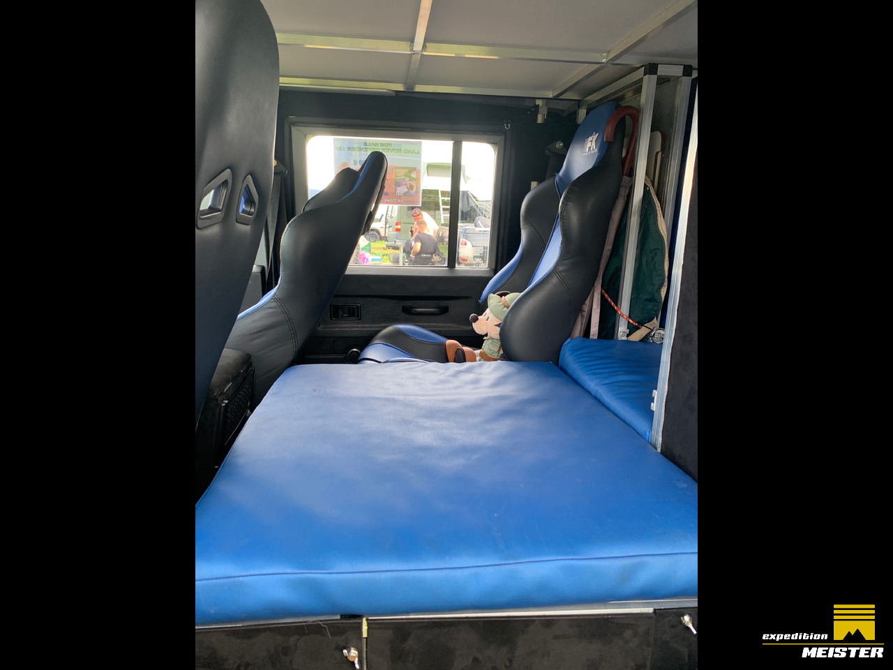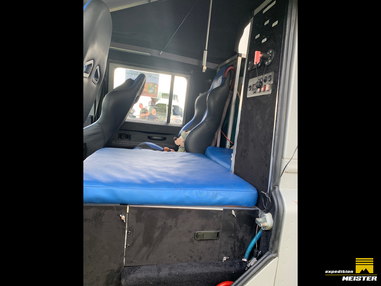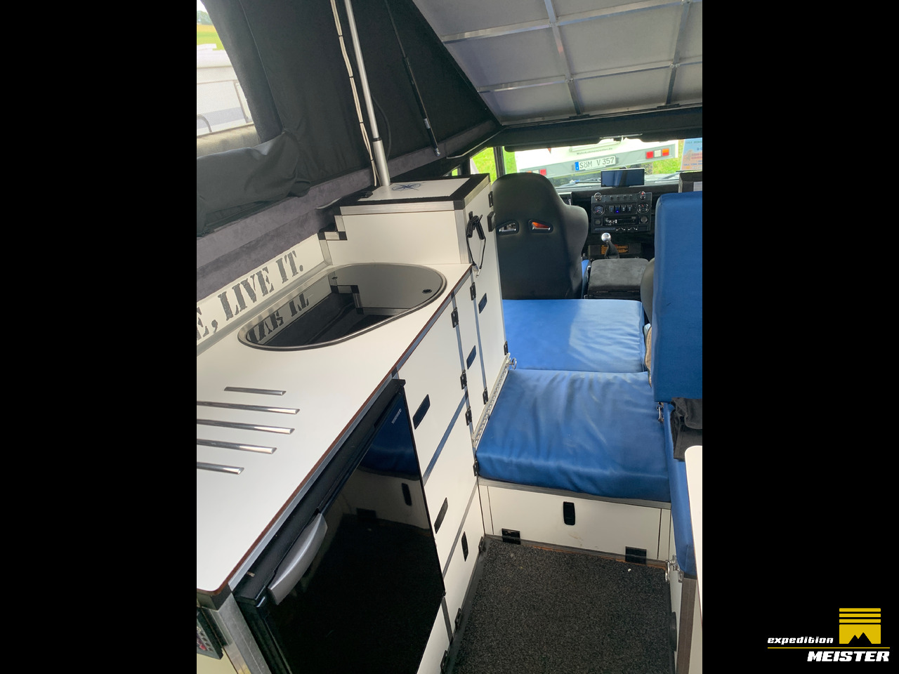 Land Rover Defender 130 with full pop up roof New 5000 kms hs 2.8 international engine , new upgrade power loaf brakes and clutch 130 diesel tank 140 water tank with hot water (11 liter tank ) inside and outside. Big fridge Planar (Russian) diesel heater. Big secondary battery plugged on solar panel , engine or camp site. 12v and 230 volts onboard. Air compressor. Very solid inside storage optimized 3 places plus one for a big dog at the moment but come back easily to 4 places. Too many things t...