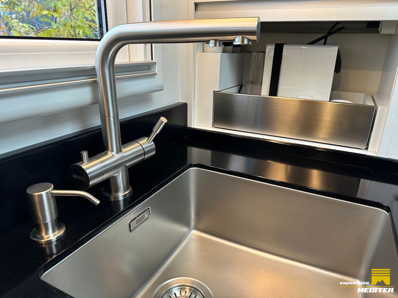 Famous-Water Filter system (Water is filtered with two 1 micron Katadyn Ceramic filters before the filling with a separate pump into the tanks), additional 0.2 micron Katadyn ceramic and 1 carbon filter for drinking water.