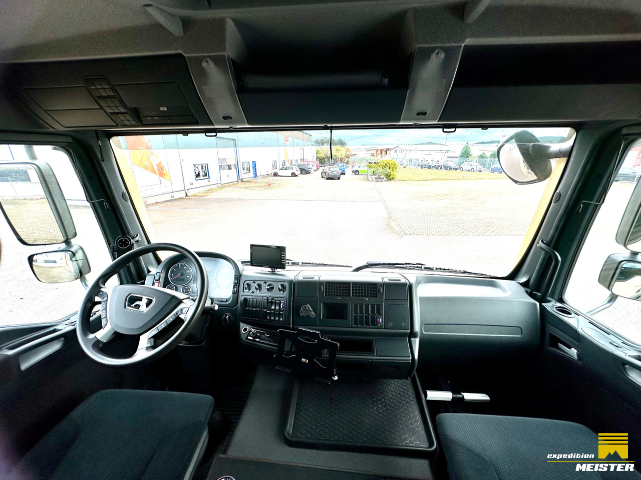 Air inlet directed upwards, with dry air filter behind the cabin, rear and front disc brakes, 3 locks, reduction gear, rear air suspension, Separ heated diesel filter, hill start brake, multifunction steering wheel, cruise control, Pioneer Hifi with hands-free intercom, rear and continuous driving camera, tablet holder, 230V socket in driver's cabin, Eberspächer Diesel Additional Air heating in the driver's cab, all-round curtain, roller blind for the windshield and sun blinds on both doors.