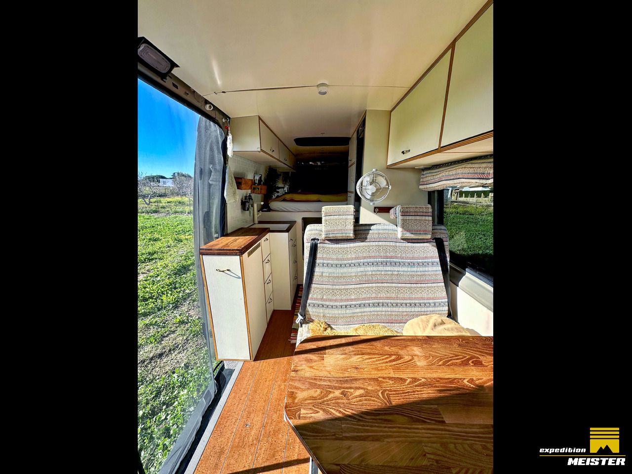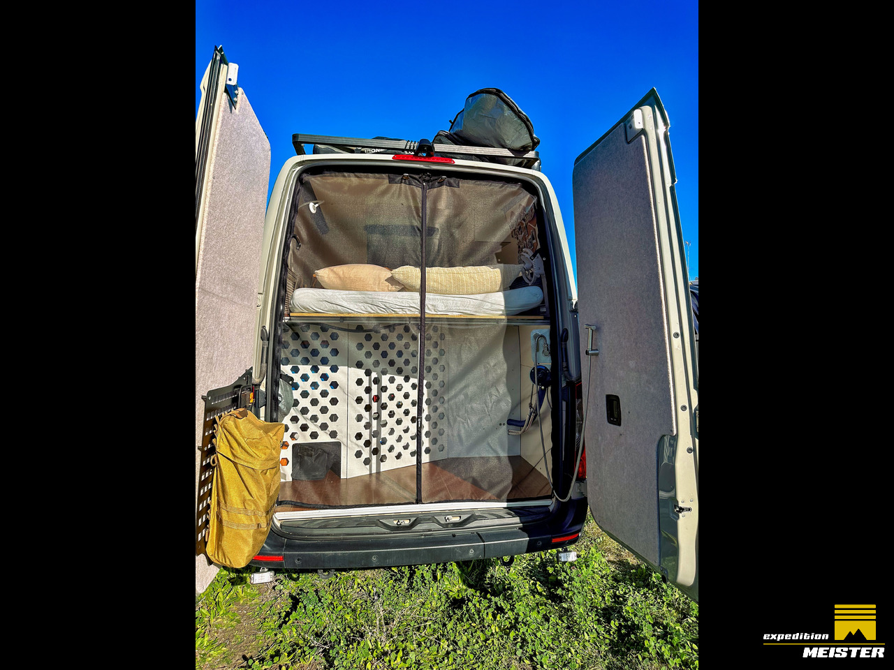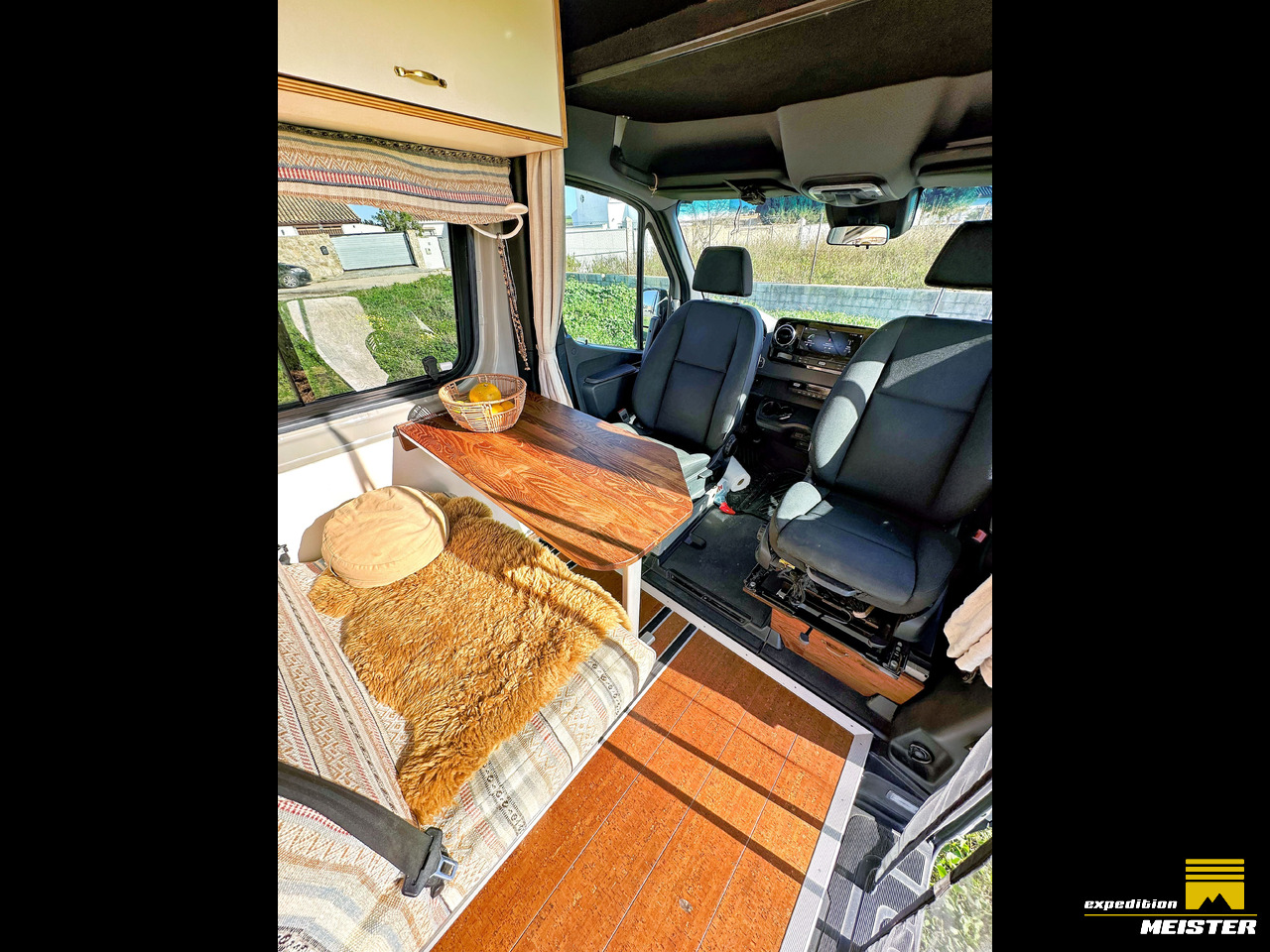 Enjoy sunny days outdoors or stay cozy in the van during rain and cold – day and night! Our Sprinter is perfectly equipped for it.