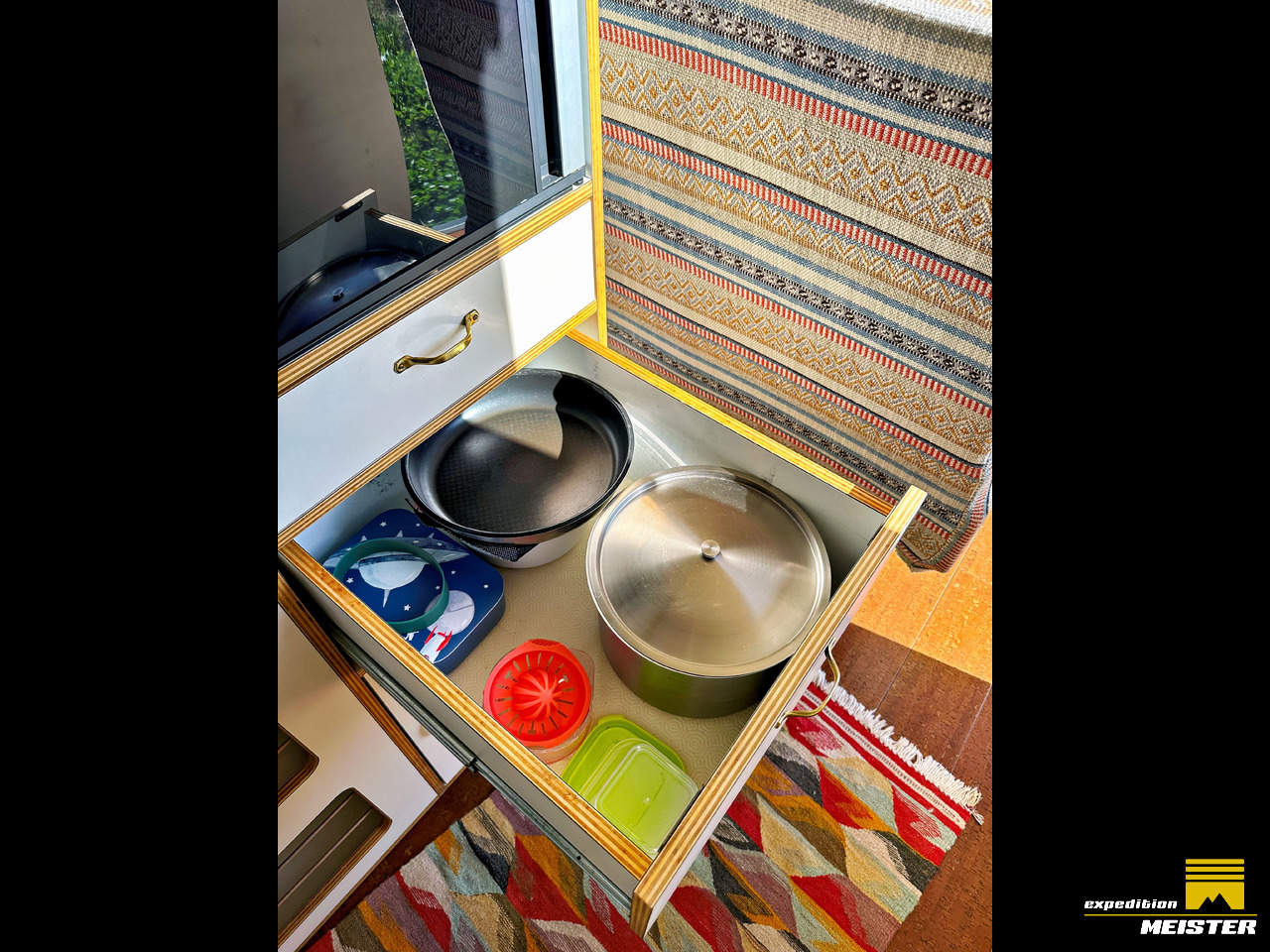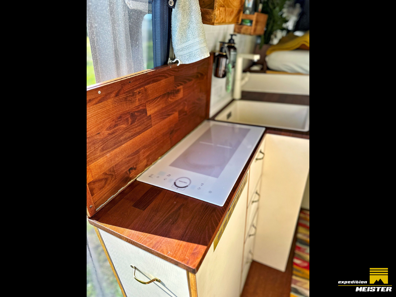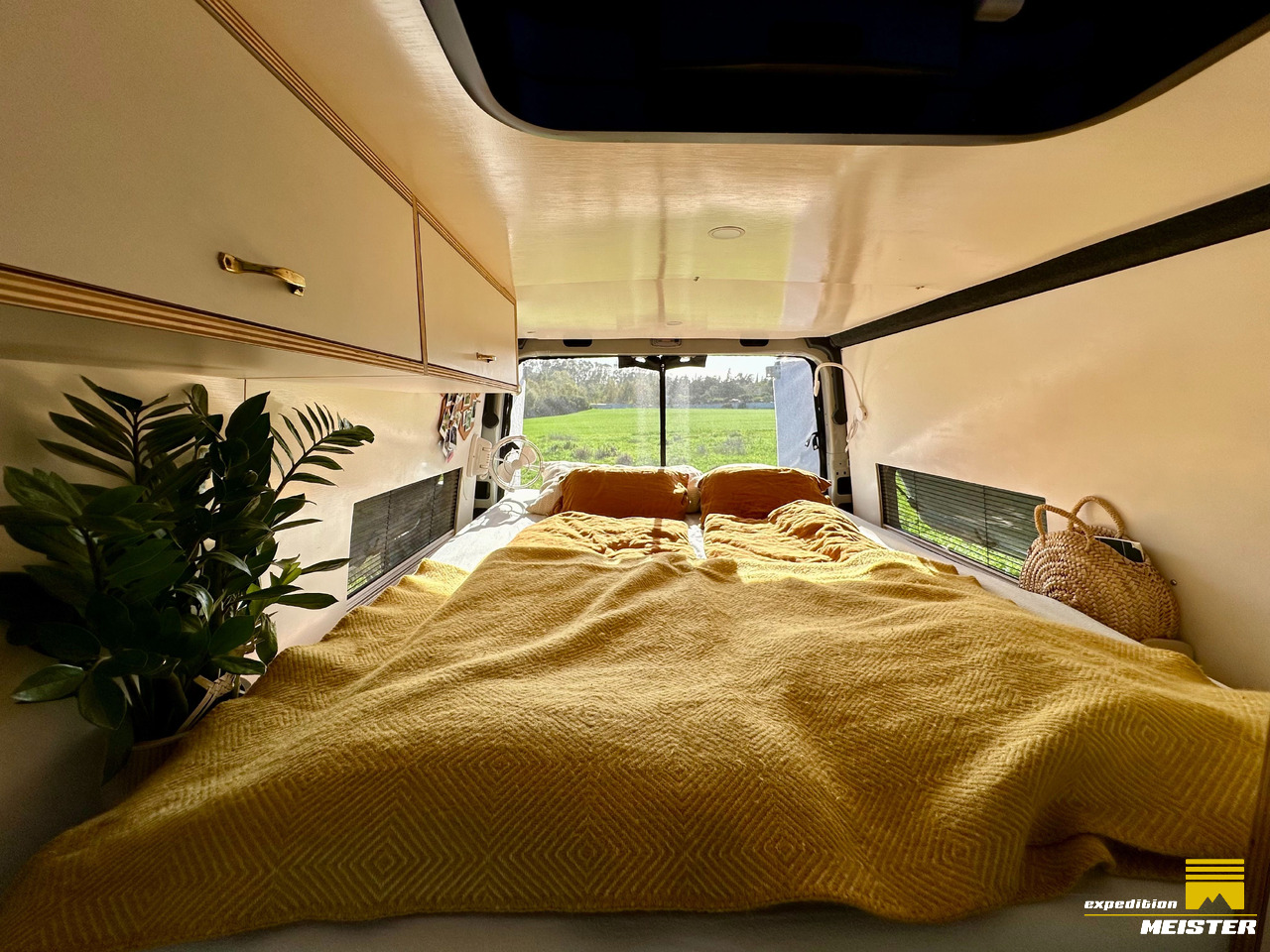 Enjoy sunny days outdoors or stay cozy in the van during rain and cold – day and night! Our Sprinter is perfectly equipped for it.