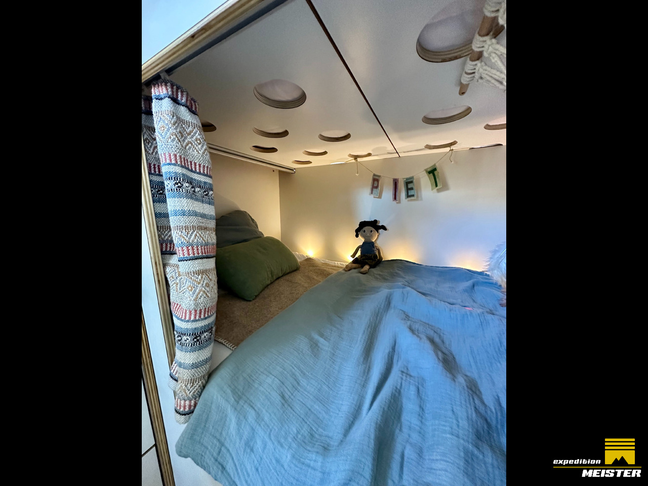 - "Cave" bed underneath the double bed (1.70m x 1.00m) with lighting