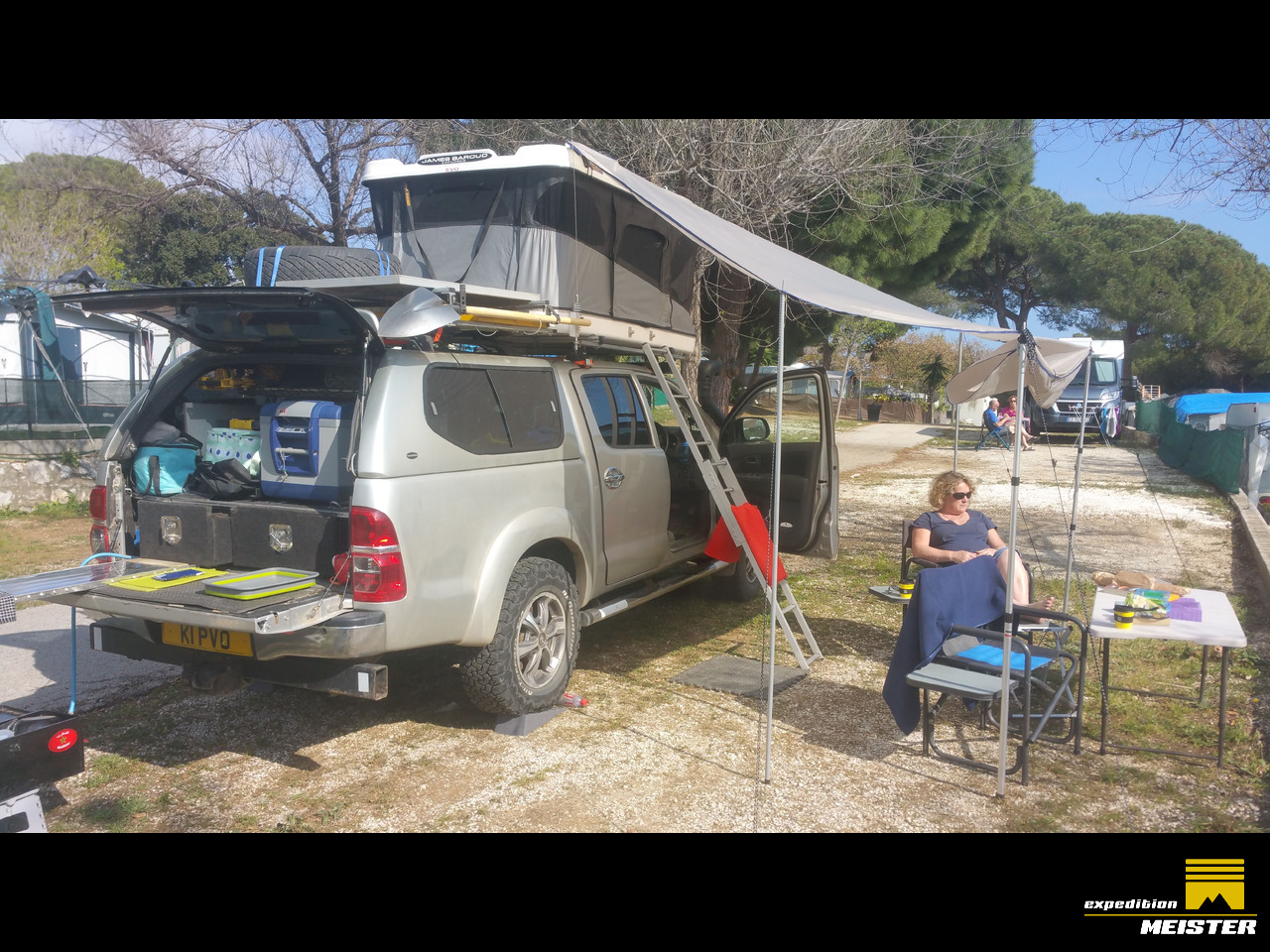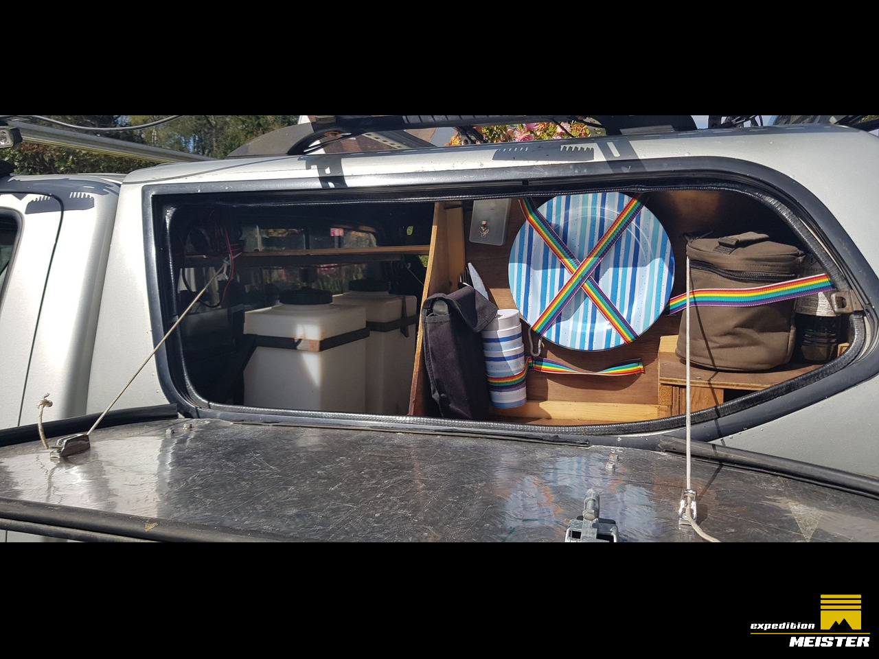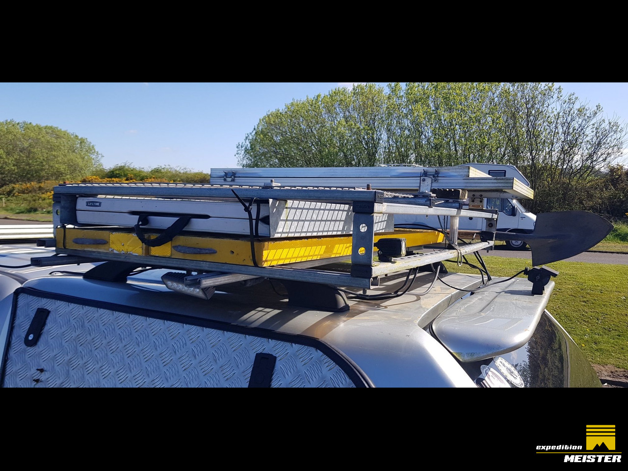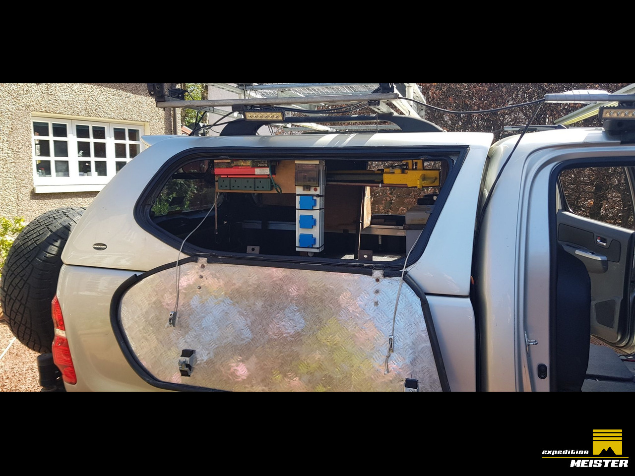 The roof rack and rear canopy has been strengthened and a shelf put in so the chairs are easily accessible and the table fits in next to the recovery tracks on the roof
