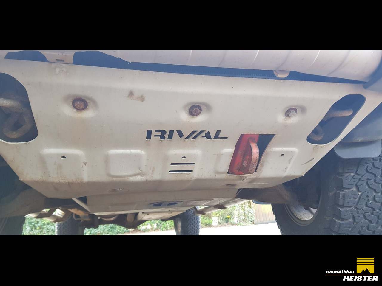 The full five piece Rival under armour has an ARB front recovery point and the AFN rear bumper jerry can and spare wheel carrier is also a tow bar and recover point . the original spare is still underneath the back .