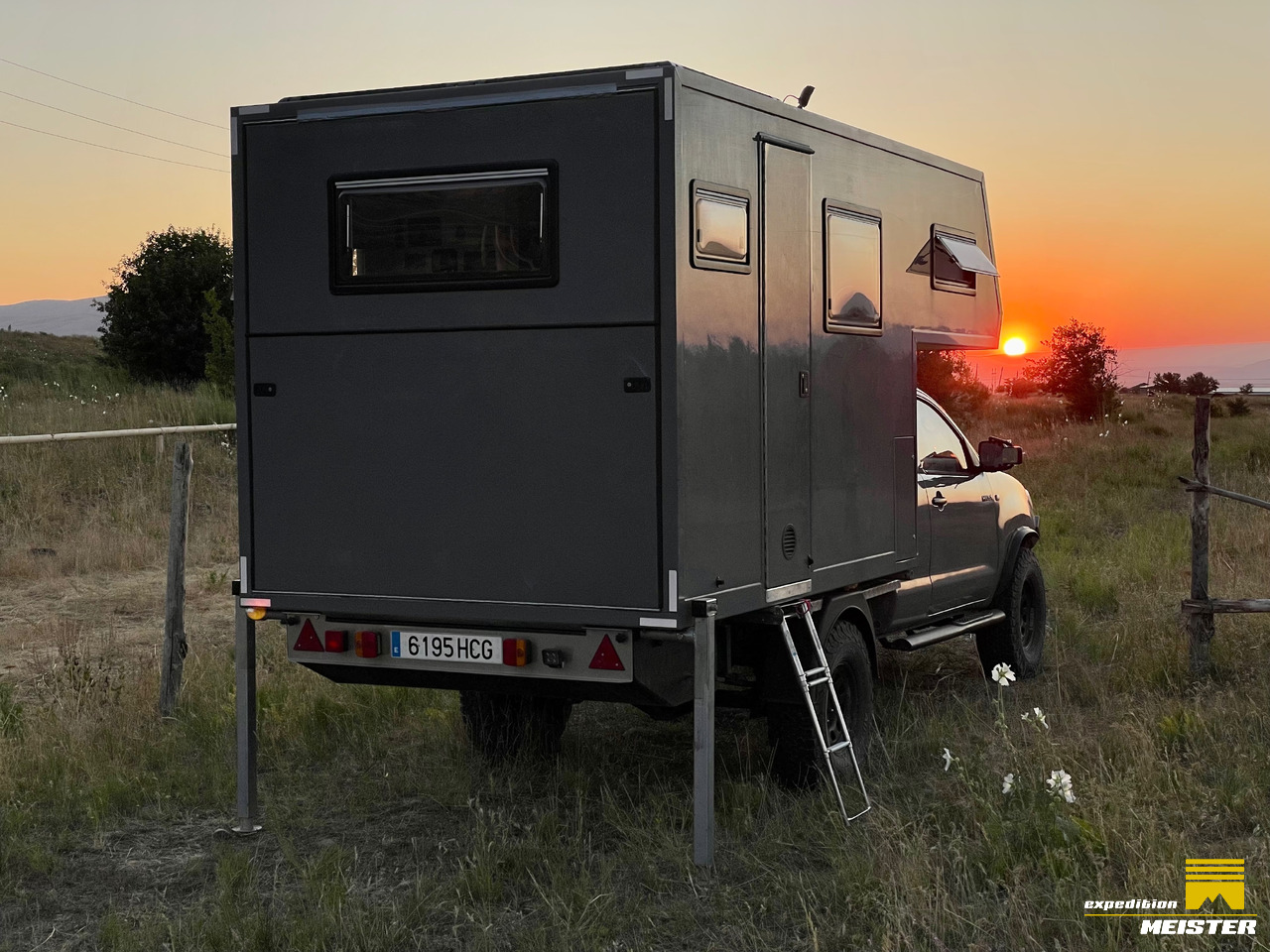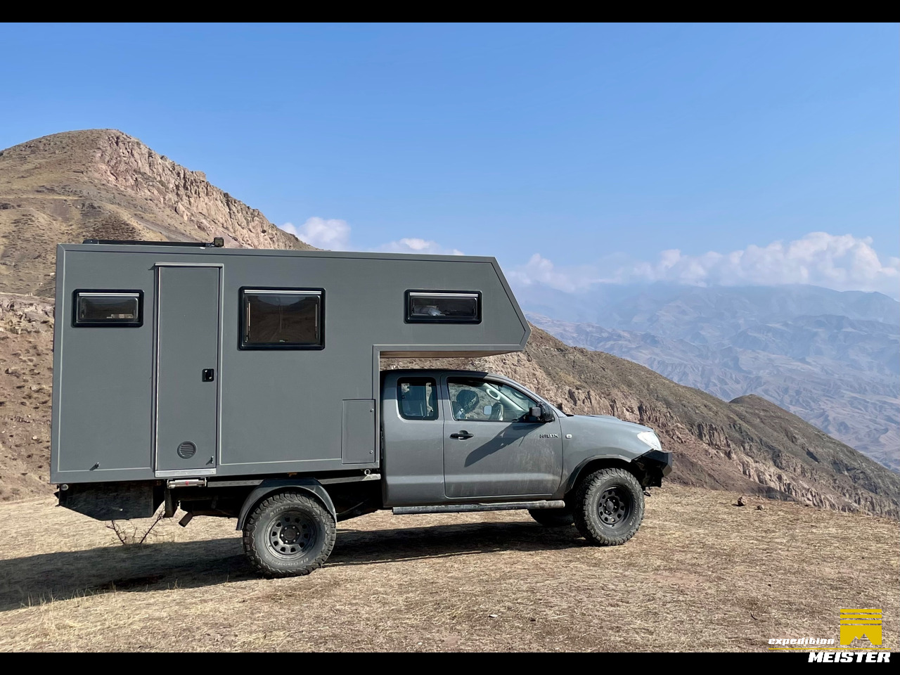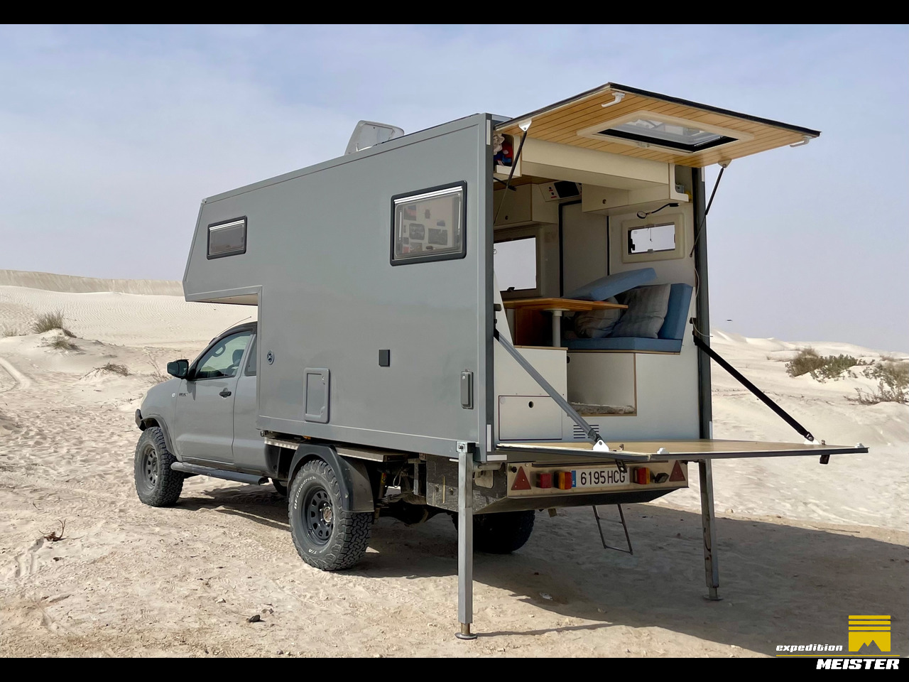 If you need an offroad capable vehicle that offers a lot of comfort, this one is for you. A reliable Toyota Hilux with a custom built cabin that offers hot showers, spacious kitchen and a terrace!