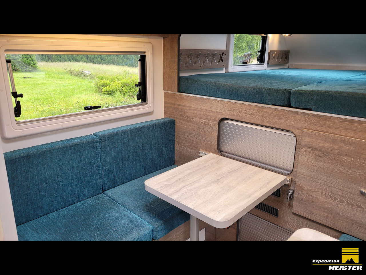 - Roof hatch in the living area with combi blind