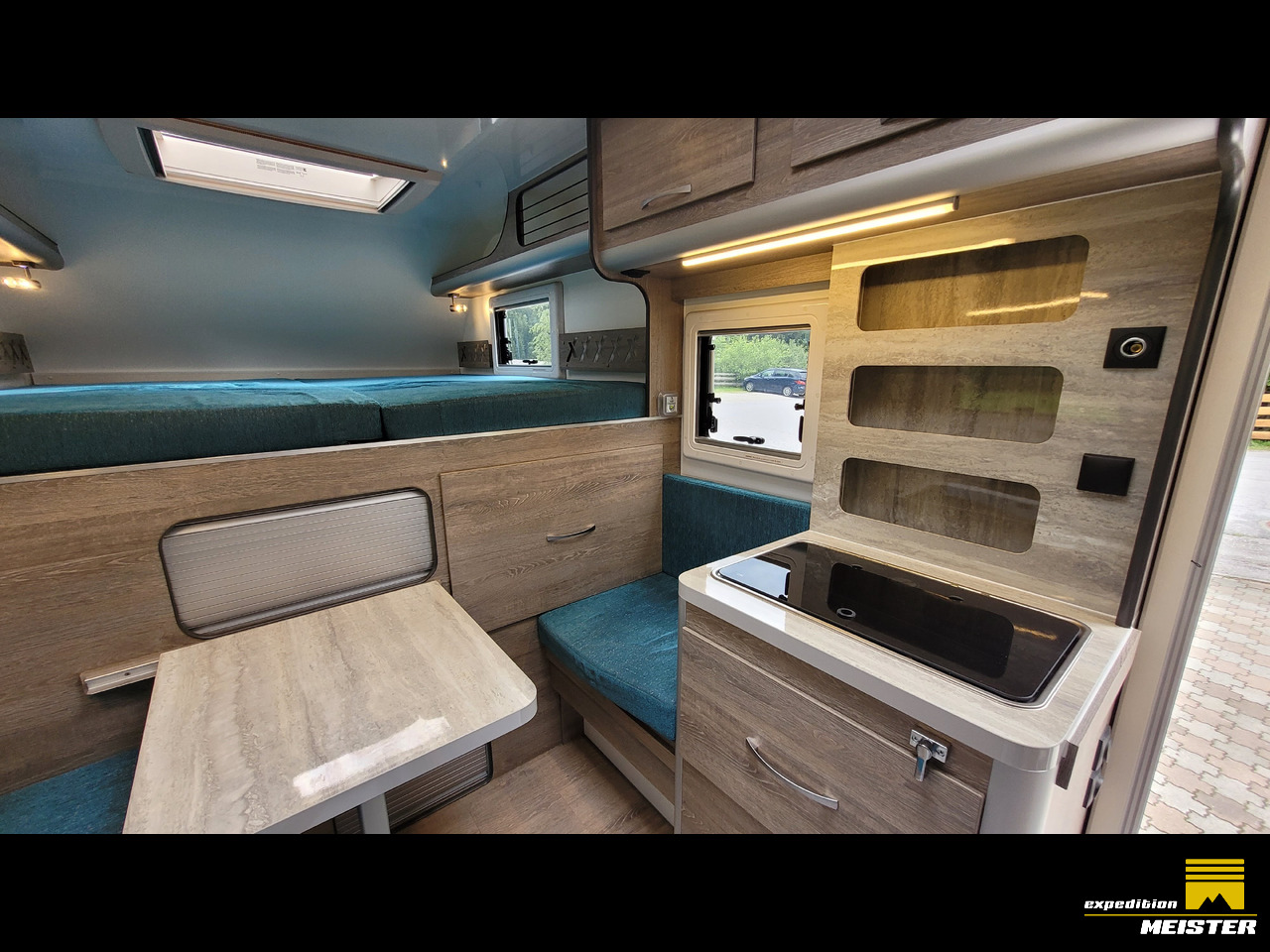 - Roof hatch in the sleeping area with combi roller blind